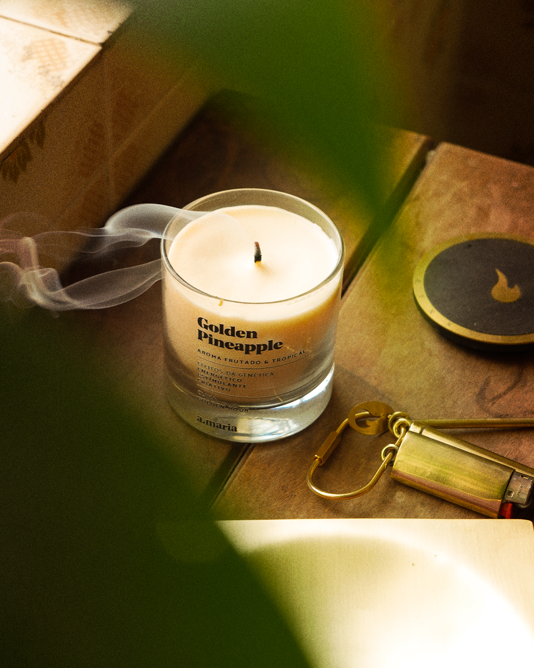 Chaveiro com mocó, capa de isqueiro, pilão e medalha a.maria em um objeto compacto, elegante e provocador.
